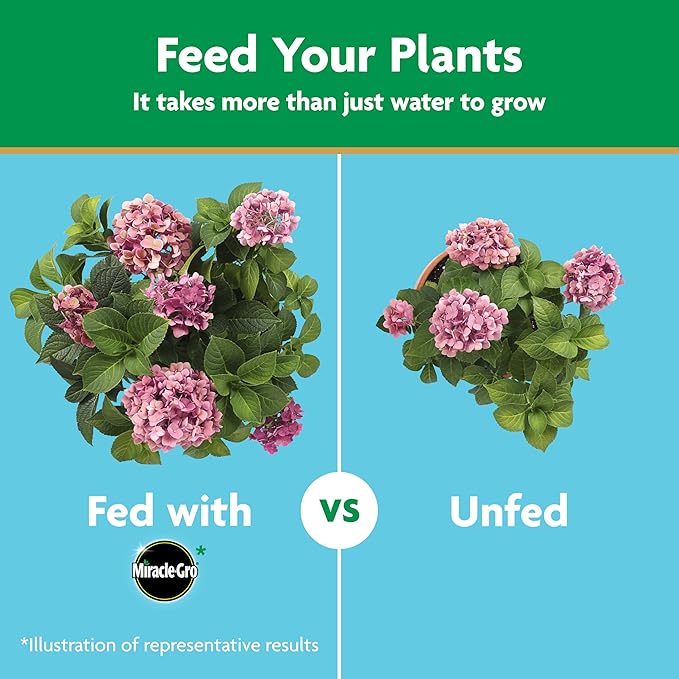 - Apply plant food every 7-14 days with a watering can or Miracle-Gro Garden Feeder