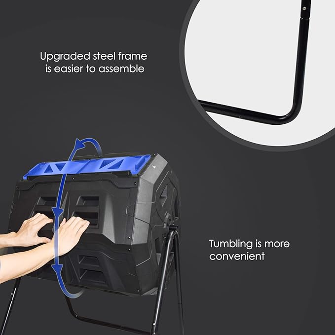 - 🌱Super High Quality: Made of "Modified PP "; Upgraded steel frame,maximum load bearing is 352Lb.Twin chamber design creates more space and time for compost.