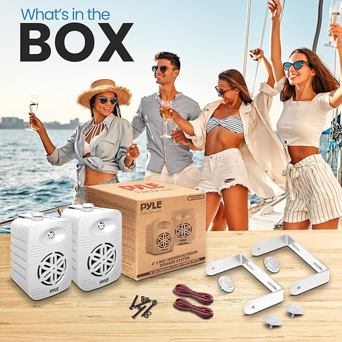 PyleUsa Indoor Outdoor Speakers Pair - 300 Watt Dual Waterproof 4” 2-Way Full Range Speaker System w/ 1/2” High Compliance Polymer Tweeter - in-Home, Boat, Deck, Patio, Poolside (White) - PDWR45WT