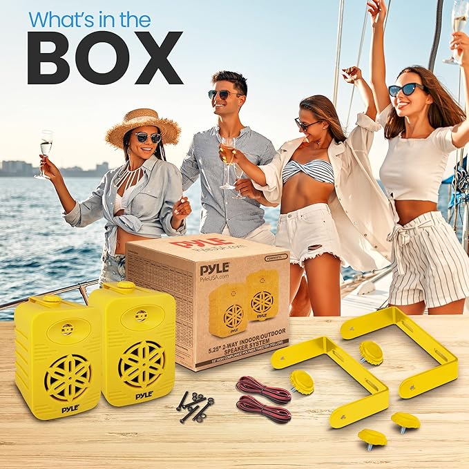 PyleUsa Indoor Outdoor Speakers Pair-500 Watt Dual Waterproof 5.25” 2-Way Full Range Speaker System w/ 1/2”High Compliance Polymer Tweeter in-Home,Boat, Marine,Deck,Patio,Poolside (Yellow) - PDWR55YL
