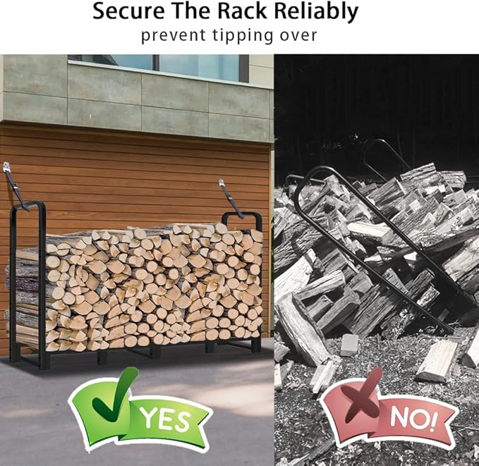 - PREVENT TIPPING OVER - Features 2 prevent tipping lock rings and 10 solid rack legs, that means we take more care for the safe of your families. Secure the rack reliably and effectively prevent tipping over of the heavy firewoods, which could otherwise result in serious injuries and even fatalities in the case of babies, children. Just lock up the rack with extra prevent tipping straps and put the rack on a hard surface.