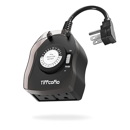 TiFFCOFiO Outdoor Timer Outlet, 24 Hour Mechanical Outdoor Timer for Pool Pump, Outdoor Light Timer Waterproof, 2 Grounded Outlets for Home and Garden, 15A 1/2HP, Heavy Duty, CSA Listed (1 Pack)