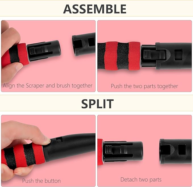 - Easy to Assemble and Disassemble: Press the joints buckle to separate the snow brush and ice scraper quickly and easily. Integrate or use separately according to needs, put into a cloth bag we provide after being separated, it is convenient to carry, easy to store and does not take up space.