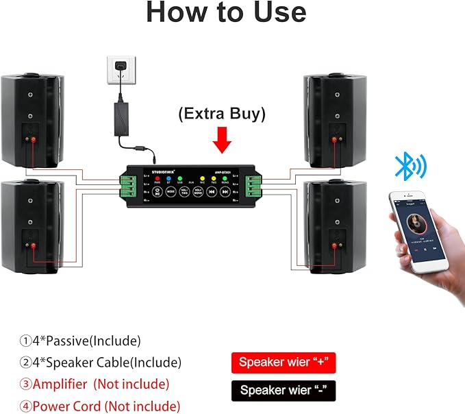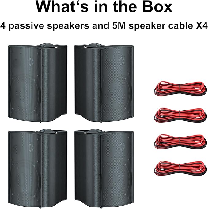 - *Notes: The speakers are passive, and the package only includes speaker cables, manual or power cords is not included.