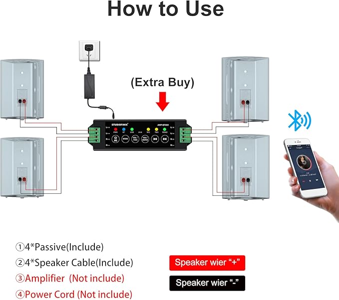 - *Notes: The speakers are passive, and the package only includes speaker cables, manual or power cords is not included.