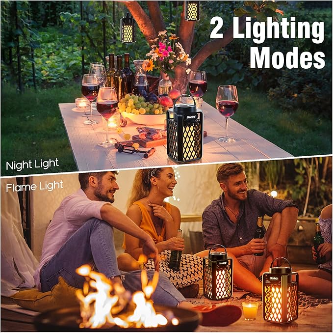 - Led flame atmosphere speaker: An amazing flame atmosphere speaker has 96 LEDs, comes with 2 modes constant light flashing light modes, they provide a excellent bonfire atmosphere for your patio, garden, party, beach, BBQ and camping;