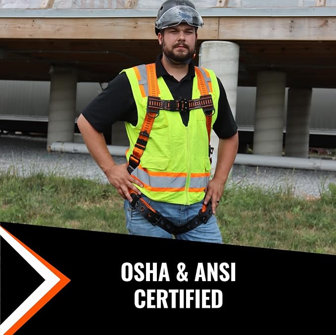 - OSHA & ANSI COMPLIANT: Javelina harness meets OSHA 1910.66 and OSHA 1926.502, Subpart M, and is compliant with ANSI Z359.11-2021. You can work with peace of mind knowing that it has been rigorously tested for safety