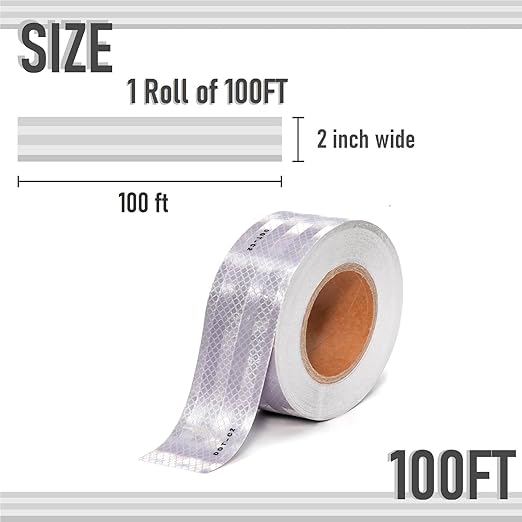 - DOT-C2 REFLECTIVE TAPE: 2" x 100FT reflective safety tape. Alternates between red & white meet the federal requirements for trucks. Suit for vehicles, trucks, boats, road marking, tractors, bicycles, motorcycles etc.