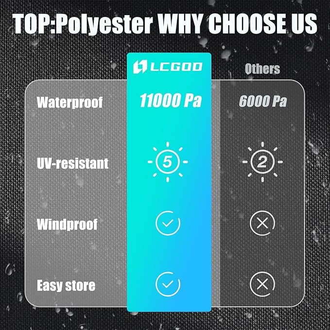 - 【Long-lasting protection】:The patio furniture cover is made of Heavy-duty 600D polyester, which can withstand 11,000 Pa water pressure without leaking. The internal silver coating and Reinforced seams, double-stitched construction, make the cover highly waterproof and UV-proof. Protect outdoor furniture from UV rays, rain, wind, ash, snow, and keep the furniture clean and durable.