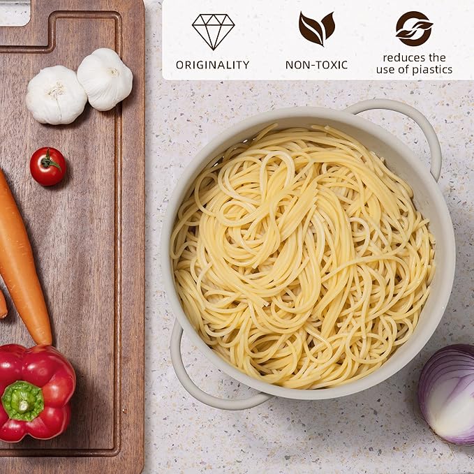 - 【Large Capacity】 The large opening design makes it easier to hold or put things in. Enough to hold 5QT of food, it can also be used to drain macaroni, wash vegetables and fruits as needed, as a fruit and vegetable basket, or even as a creative flower pot and ornament.