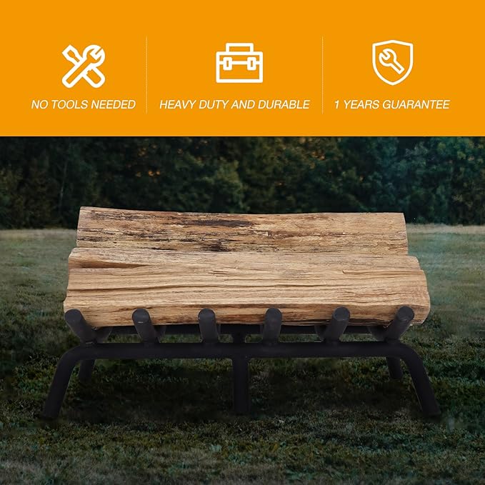 - [Thickned Round Steel] Firewood grates is made of 3/4" round bar steel. Compare with the diamond-shaped steel or flat iron fireplace log holder, it is heavy duty and more durable. No assemble need, very convenient.