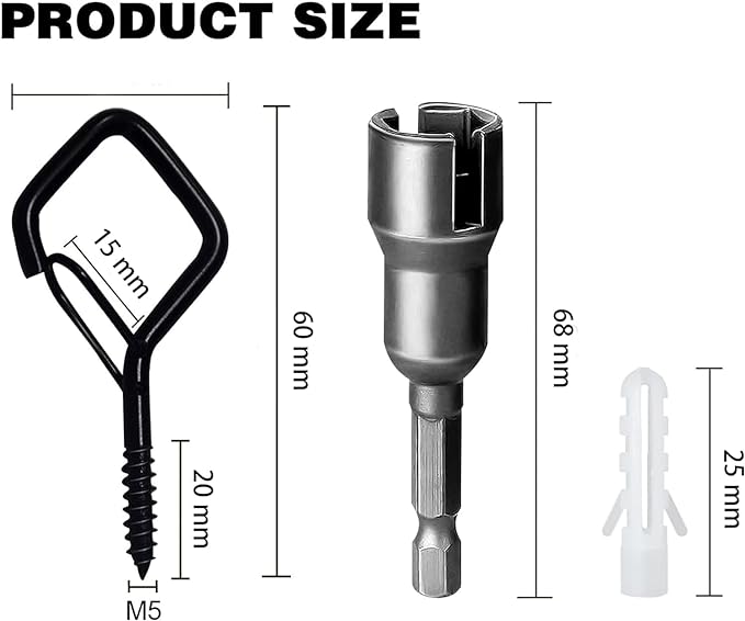 - 【Package list 】The set includes 20 screw hooks, 20 expansion tubes and 1 wing nut driver.