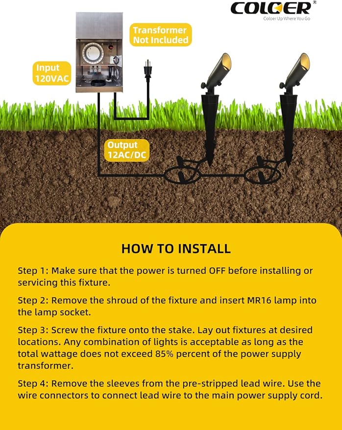 - Replaceable Bulb: The COLOER mini landscape spotlight uses a design with separate light fixture and bulb, which offers a longer lifespan compared to the non-detachable integrated design. You can replace the bulb without having to replace the entire fixture just because the bulb is broken. COLOER landscape lighting offers a lifetime warranty(painted finish is 10 years) for the light fixture.