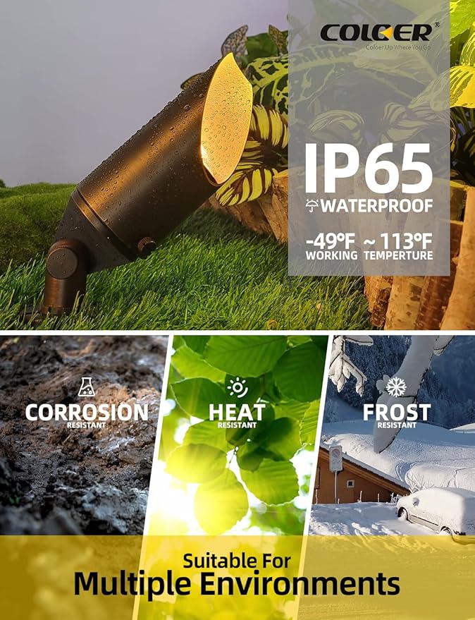 - Replaceable Bulb: The COLOER adjustable bronze landscape spotlight uses a design with separate light fixture and bulb, which offers a longer lifespan compared to the non-detachable integrated design. You can replace the bulb without having to replace the entire fixture just because the bulb is broken. COLOER landscape lighting offers a lifetime warranty(painted finish is 10 years) for the light fixture.