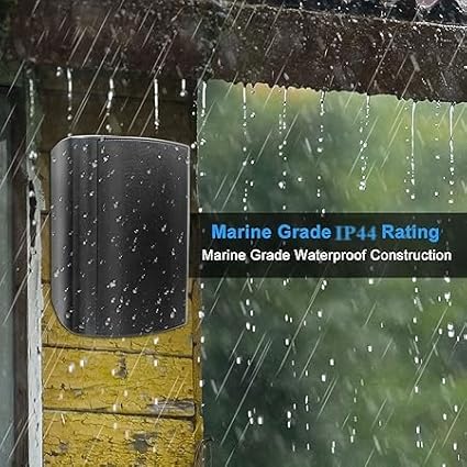 - 【ALL WEATHER OUTDOOR SPEAKER】With a rating of IP44, the Wall Mount outdoor/indoor Speakers are water and dust resistant, specially designed to withstand most environments. Hang your speakers outside without fear of damage. Adjustable/locking swivel mounting brackets allow for optimal sound dispersion.Simply Mount the swiveling U-bracket. Adjust angle and fasten the speakers with a click