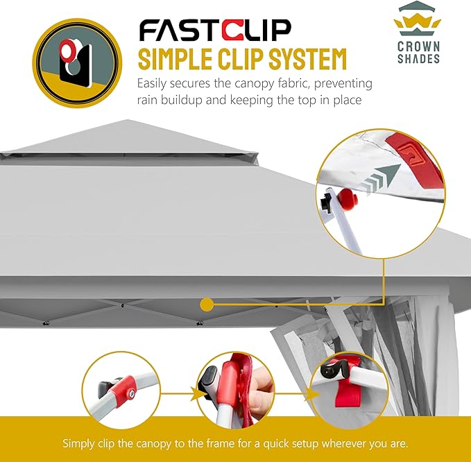 CROWN SHADES 13x13 Pop Up Gazebo, Canopy Tent, Gazebos on Clearance - Outdoor Gazebo for Backyard & Patio Furniture - Carpa Pop Up Tent with Wheeled STO-N-Go Cover Bag (Grey)
