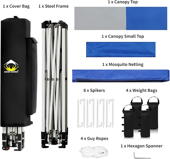 - [OUR PROMISE]: Experience our amazing customer service! We are here to support your canopy. We are available around the clock to help correct any problems or questions you might have with our Crown Shades products. Please note that our products are designed for daily use to protect from the sun and light rain. Please fully anchor your canopy to the ground to avoid damage.