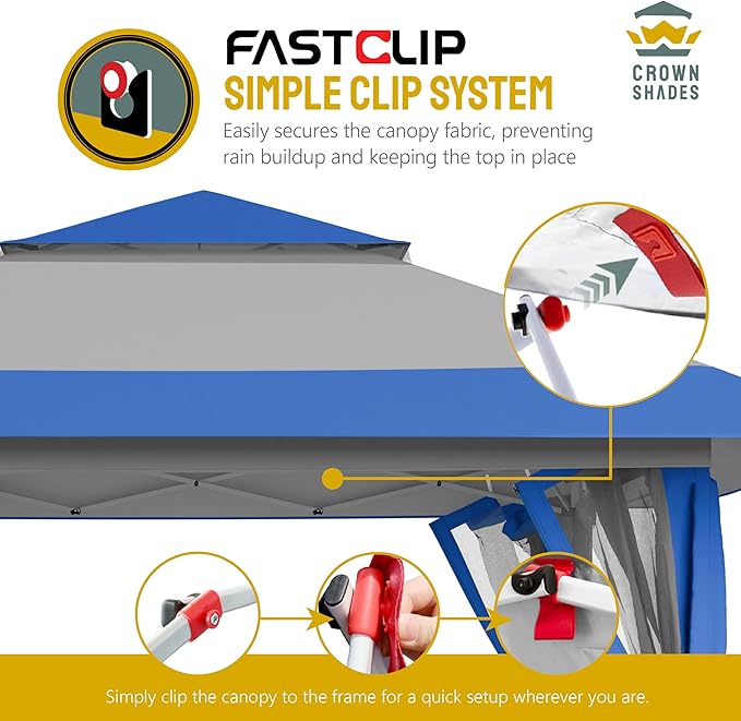 CROWN SHADES 13x13 Pop Up Gazebo, Canopy Tent, Gazebos on Clearance - Outdoor Gazebo for Backyard & Patio Furniture - Carpa Pop Up Tent with Wheeled STO-N-Go Cover Bag (Blue & Grey)