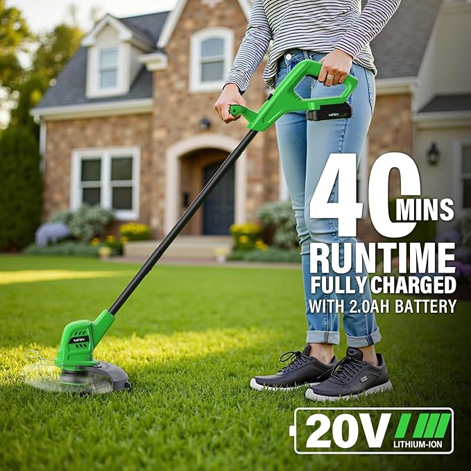 - 【Longer Working Time】The weed wacker is equipped with a 20V 2.0Ah battery, which can meet the needs of long time use.