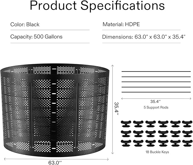 - Large Capacity: Compost bin max capacity: 500 gallons, which is enough to store and ferment all kinds of waste; Adjust the size of the compost bin according to the actual needs to save time and reduce the fermentation frequency and improve the fermentation efficiency