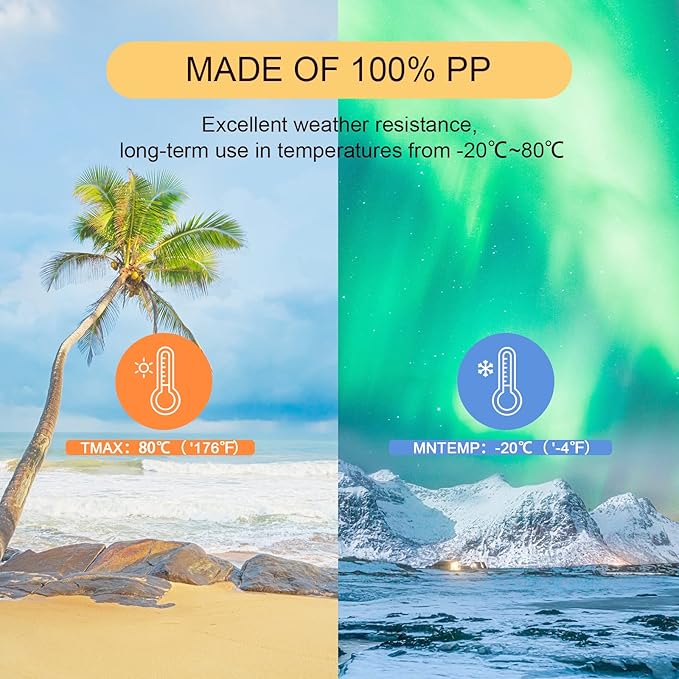 - Durable: Made of high-quality PP, strong and durable. Between -15β~80β (-4β~176β) they can stand any weather and keep stay intact through blizzards and windstorms that will never loosen or rust