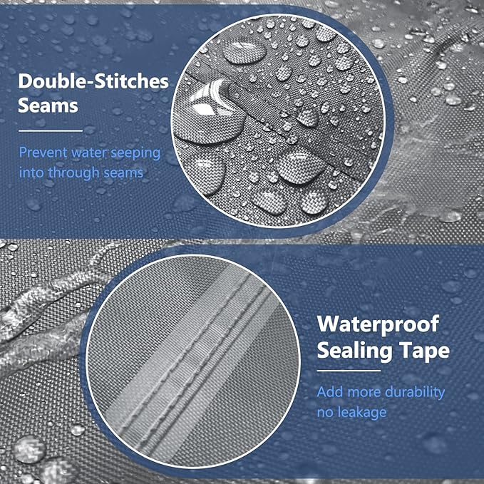 - 【Waterproof Material】Upgraded waterproof outdoor furniture cover not only added waterproof coating and a waterproof laminated backing but also added a waterproof pressure-glued at the back seam, which prevents water from seeping through our furniture cover. Keep your outdoor furniture dry before use, even on heavy rain days. The 4 piece patio furniture covers are crafted with premium stitching extending the outdoor table chair cover's life.