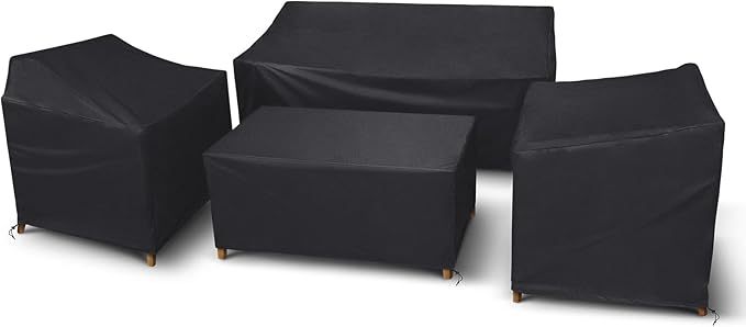 STARTWO Outdoor Furniture Cover Waterproof, 4 Piece Patio Furniture Set Cover for Outside Couch, Lawn Chairs, Coffee Table, Windproof with Buckle Strap, Black