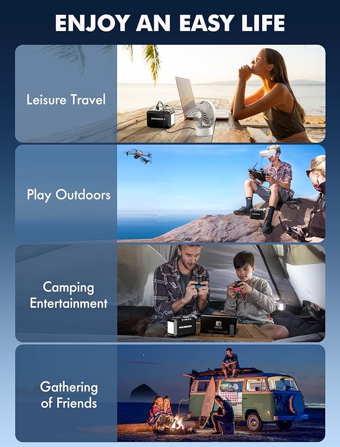 - Ideal Gift for Family and Friends: This portable power bank with AC outlet is also suitable for camping, fishing, traveling and powering festival led lights. You will receive 1* MARBERO 88Wh portable power bank, 1*User Manual, 1*Cigarette lighter, 1*AC Charging Adapter
