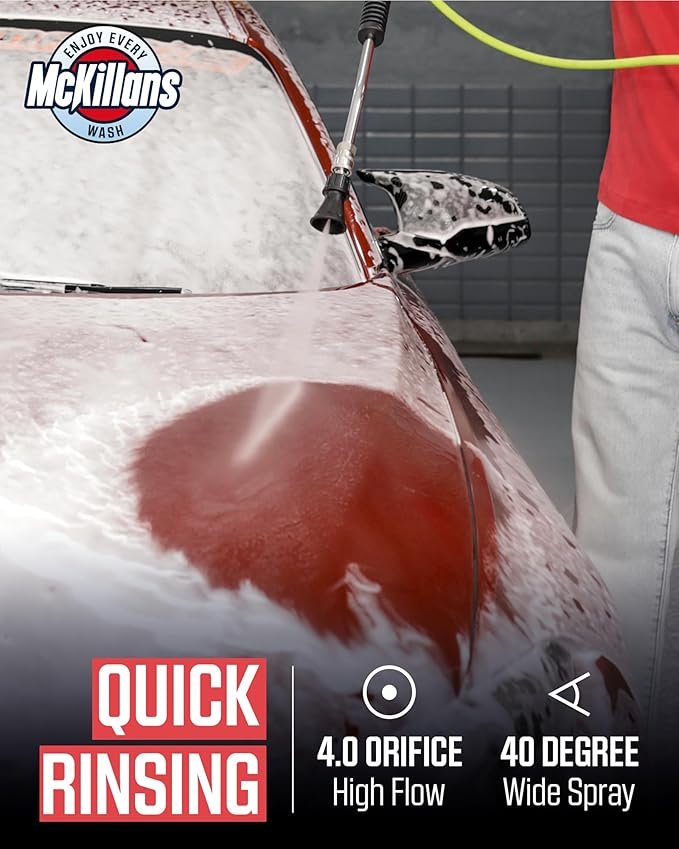 McKillans 40 Degree Pressure Washer Nozzle - Stainless Steel, High-Efficiency Cleaning, Durable Nozzle Guard with Rubberized Protection (4.0 Orifice)