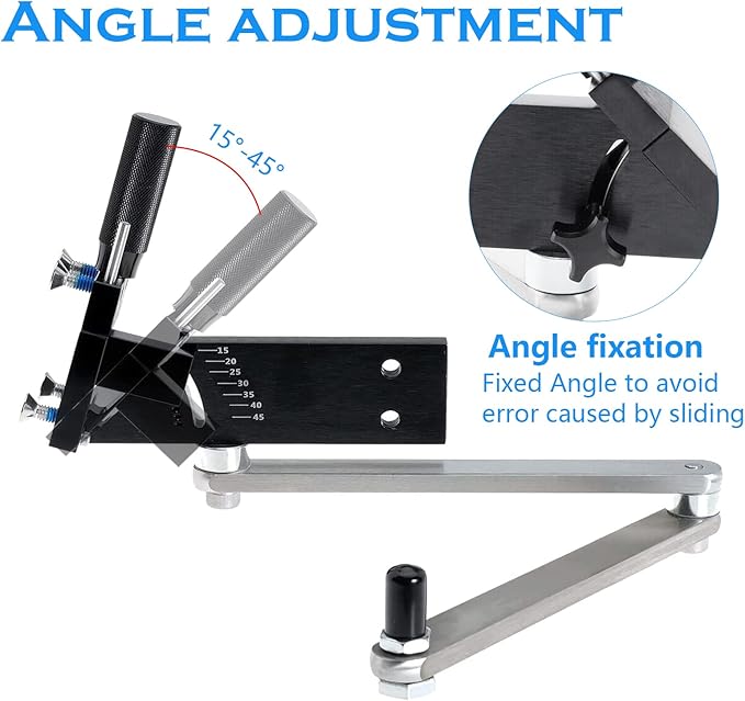 - The sharpener is adjustable in 5-degree increments between 15° and 45° and is suitable for grinding blades 1.57 to 2.95 inches (4 to 7 cm) wide.