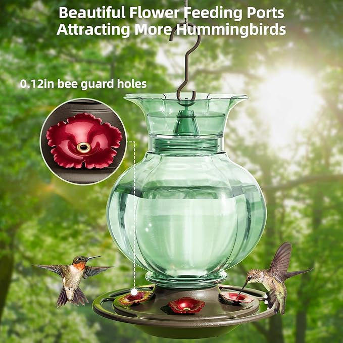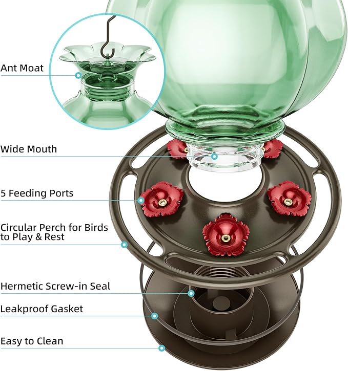 - Rustproof and Leakproof Function: this hummingbird feeders for outdoors hanging. The base is made of rustproof metal and sturdy ABS plastic. Equipped with perdurable leaking gasket, ensure that no nectar leaks from the base of this feeder.