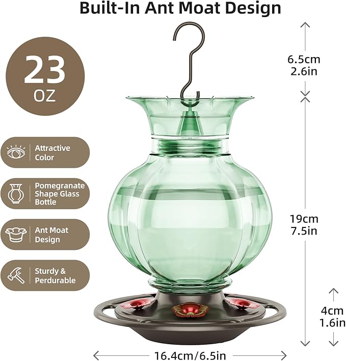 - Attract Hummingbird Feeder Design【 U.S. Patent Pending】: 23 ounces high quality hummingbird feeder in beautiful Pomegranate Shape design. Let birds fly into your garden and enjoy your good time with nature.