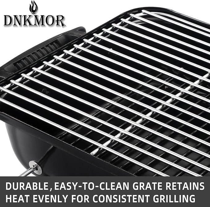 - Reasonable Design:The top of the lid with an chinmey for ventilation,DNKMOR mini charcoal grill also include one theremometer on the grill for a better control taste from cooking. Inside of the grill, there is one piece chrome cooking grid and one pc charcoal pan.