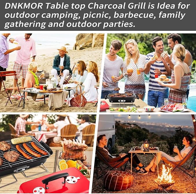 - Portable Charcoal Grill:DNKMOR portable small charcoal with wood handle on the top of the smoker. It is easy to carry and take away, perfect for camping, beach, picnics, or barbecue party at least 3-4 people at a time.