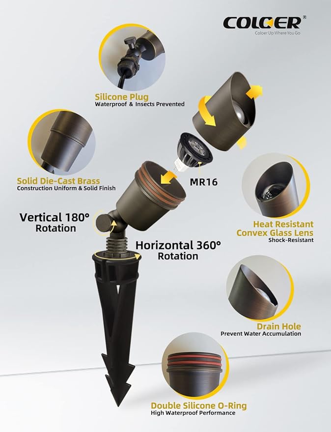 - Replaceable Bulb: The COLOER bronze small size landscape spotlight uses a design with separate light fixture and bulb, which offers a longer lifespan compared to the non-detachable integrated design. You can replace the bulb without having to replace the entire fixture just because the bulb is broken. COLOER landscape lighting offers a lifetime warranty on the light fixture(painted finish is 10 years) and a 5 years for the LED bulb.
