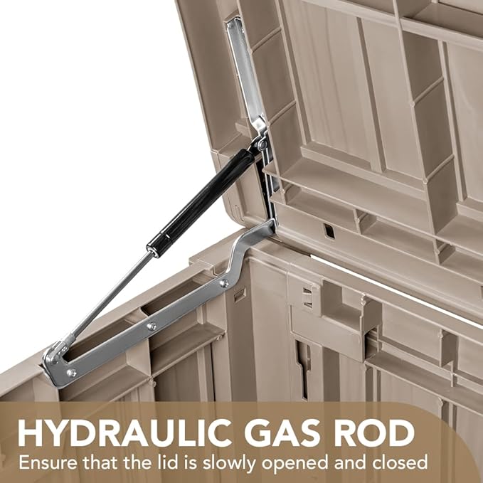 - Careful Design: The humanized double-air bar design provides easy lifting and slow closing, and maximum lifting of the storage box cover. 2 grooves are set on both sides of the deck box for easy handling, Lock holes are reserved to prevent articles from being lost after locking.