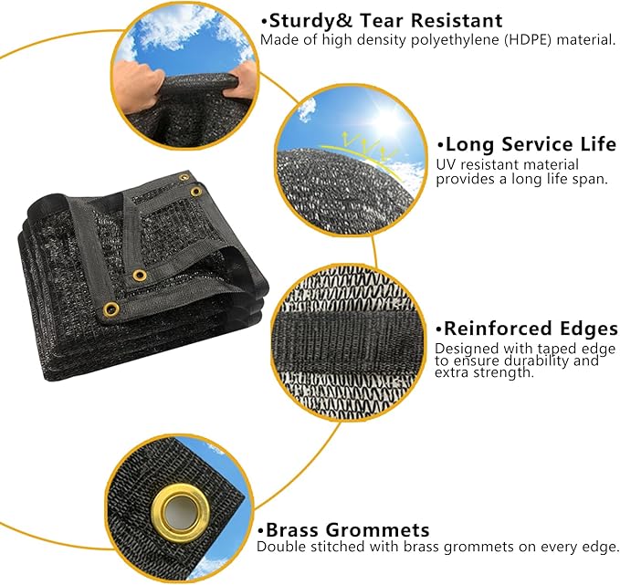 - Versatile Use:Shade cloth for garden is perfect for creating cool, shaded spaces in patio, garden, greenhouse and more. Shade cloth for greenhouse blocks sunlight, provides cooling, moisture control, and frost protection, shielding plants, flowers, fruits, vegetables, livestock, poultry from excessive sunlight or hail. Ideal for backyard, courtyard, porch, pergola, balcony, carport, pond, swimming pool, barn, dog kennel and chicken coop, it also works as a sunshade, privacy screen, or windbreak