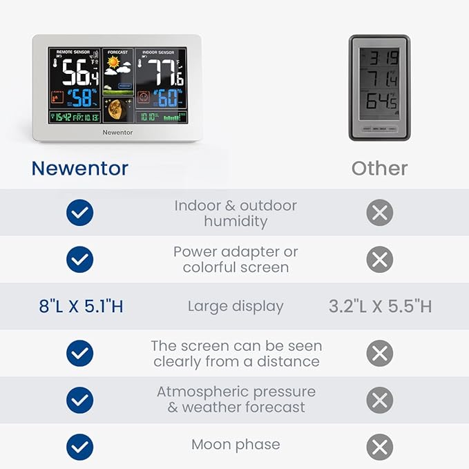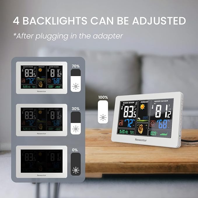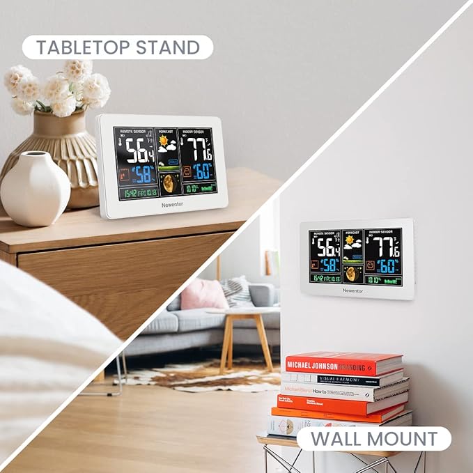 Newentor Weather Station Wireless Indoor Outdoor Thermometer, Color Display Digital Weather Thermometer with Atomic Clock, Barometric Pressure, Forecast Station with Adjustable Backlight, White