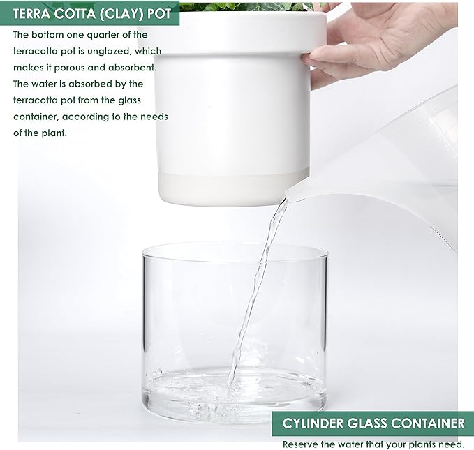 - Self-Watering System: The bottom of the terracotta pot is unglazed, allowing plants to absorb water through the pot walls.