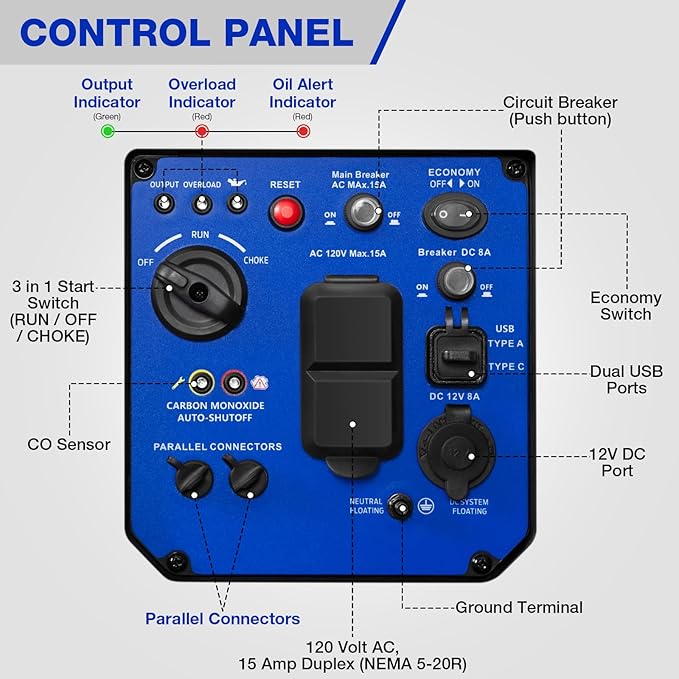 - Parallel Ready: When one generator isn't enough, our equipment is parallel-ready. Connect two inverter generators using a parallel kit (not included) to double your power output. It's a convenient and flexible solution for when your power needs grow.