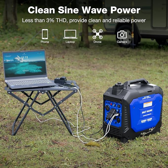 BILT HARD Generator 2500 Watt, Quiet Inverter Generator Portable 80cc 4 Stroke Engine, CO Sensor, Parallel Ready, 120V AC Duplex Receptacle and 12V DC Output, Outdoor Generators for Home Backup Use