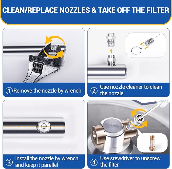 - For Dads/Husbands/Men/Him: Enhance your pressure washing experience with the included extra accessories. The package comes with an extension wand for added reach, five spray nozzles for versatile cleaning options, a nozzle cleaner for easy maintenance, a spray bottle for applying detergents, and two replacement nozzles for long-term usability. We promise that MEKOH provides life-long after-sales service for each customer, please let us know if you need any help