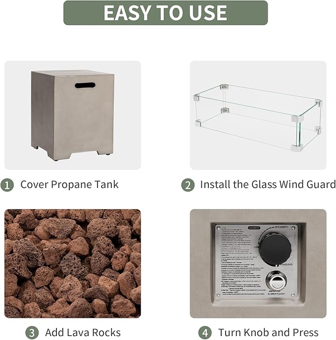 - 🔥【 Perfect Hideaway 】: We use clean-burning propane fire pits but still want to keep the unsightly take tucked away out of view. That's why COSIEST makes this beautiful and ingeniously simple tank cover. Not only is it beautiful and durable, made from the same fire-retardant magnesium oxide and steel as our fire pits and tables, But It's also functional as a convenient side table that goes well with modern outdoor furniture decor with its simple clean lines.