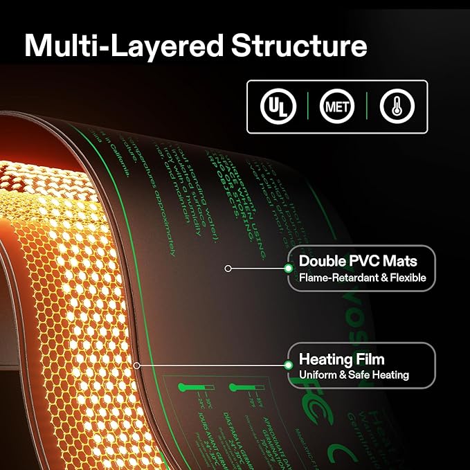 - Even Heating in a Larger Heating Area: This heating pad uses advanced far-infrared heating technology to provide consistent and even heat; This technology expands the heating area in order to create more optimal conditions for accelerating plant growth; The durable, reinforced heating film comes with double insulation to ensure that the heat will not scorch the roots