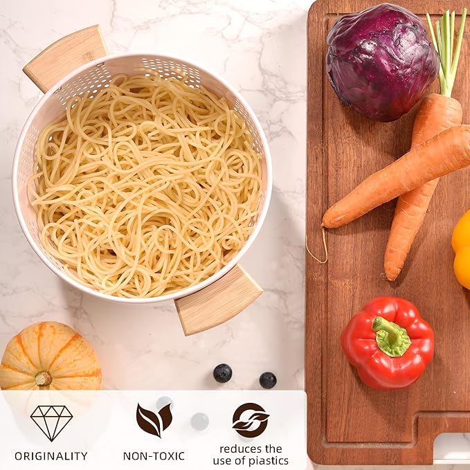 - 【Wooden Easy Grip Handles】 The wide, easy to grip wooden handle doesn't conduct heat, large force area, easier draining process .The handle is fixed by screw, it won’t come off easily. Comfortable to hold, strong and durable.