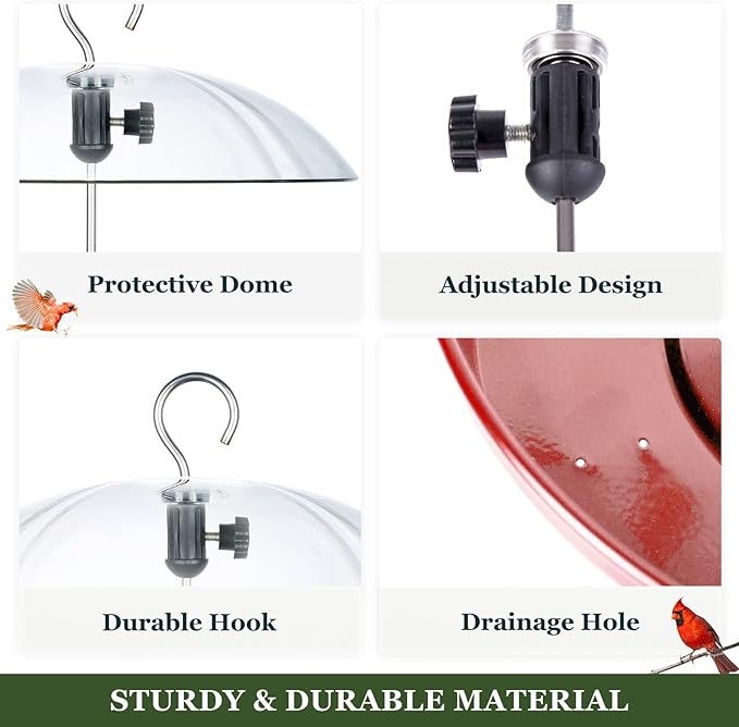 Kingsyard Adjustable Platform Bird Feeder for Outdoors Hanging, Metal Tray Bird Feeder with Dome Top, Attract Bluebirds Cardinals Goldfinches (Red)