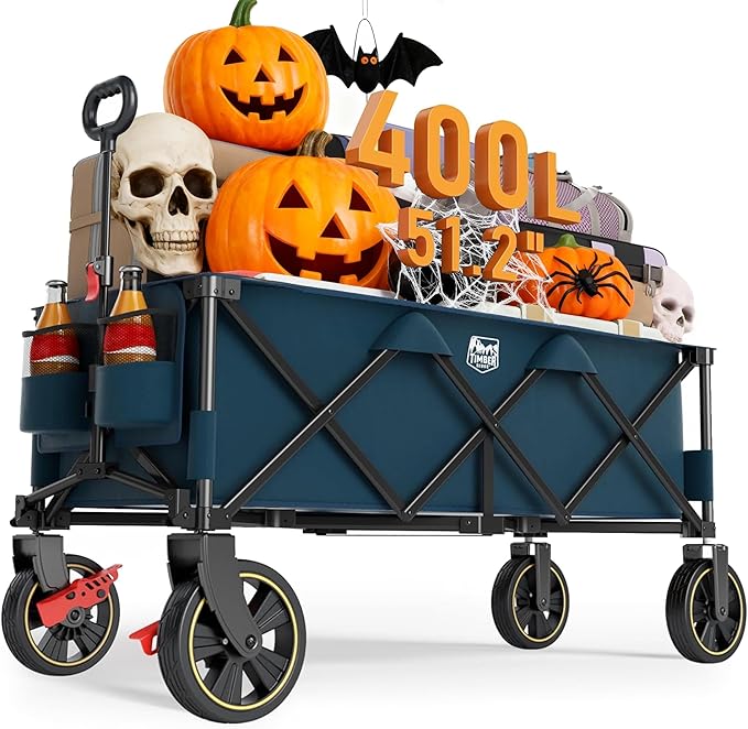 - HEAVY DUTY FOLDING WAGON: TIMBER RIDGE extended cart adopts the stable design of three cross chassis and 25×12mm thickened high-strength metal frame, which is more stable and safer than other carts, and it can easily withstand 500 pounds.(For daily use, we recommend a weight load of 350 lbs, with a maximum limit of 500 lbs. Labels/manuals may vary by batch, but all products are tested to the above capacity.)