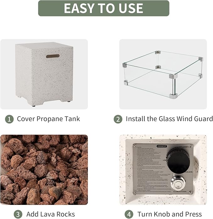 - 🔥【Premium color】: Not white, it is beige with five colors of colored spots. It looks more sophisticated than a solid color fire table. The clean and high level beige square fire pit table is ideal for gathering with friends and family for warm, good conversation.