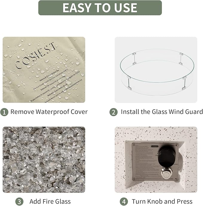 - 🔥【 Fireplace-in-the-round】: It's like having a fireplace wherever you want it! The low profile of this elegant fire table just beckons you to gather round it and tell stories. Clean burning propane flame provides soothing warmth with electronic ignition, safety valve for easy start, gentle lighting and a centerpiece for many outdoor evenings worth remembering.