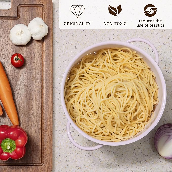 Metal Colander 5 Quart Powder Coated Self-draining Metal Strainer with Base,Kitchen Pasta Fruit Vegetable Basket with Double Handles (Pink)